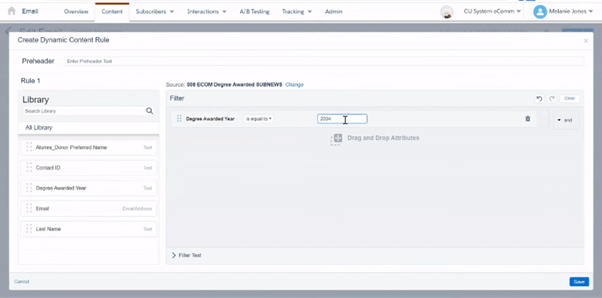 設定は難しくありません。Content Builderの画面上で、ブロックを選び、表示条件を指定するだけ。AMPscriptなどの専門知識がなくても大丈夫です。