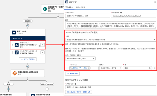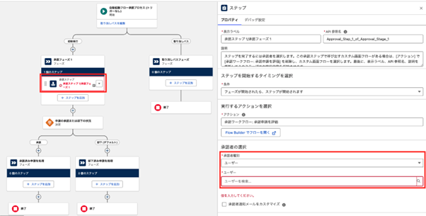 - [承認フェーズ1]の承認ステップをクリックし、承認者を設定