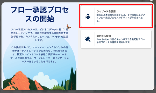 フロー承認プロセスは、ウィザード形式で設定できるため、必要な項目を順に指定するだけで作成できます。
