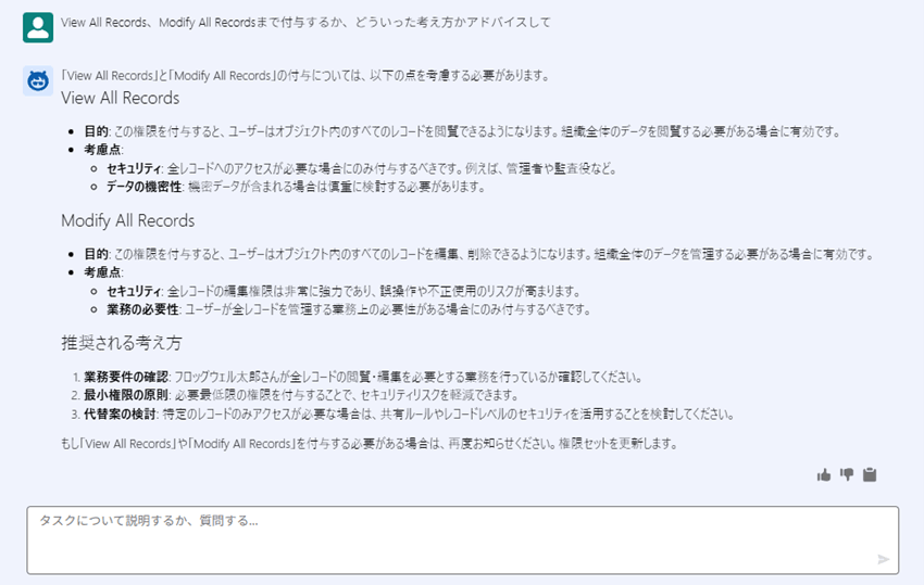 いちSalesforce管理者として適切な受け答えをしてくれています。