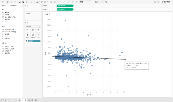 トレンドラインを使えば、割引率と利益の関係を可視化できますし、Explain Dataで成果変動の要因を探ることも可能です。
