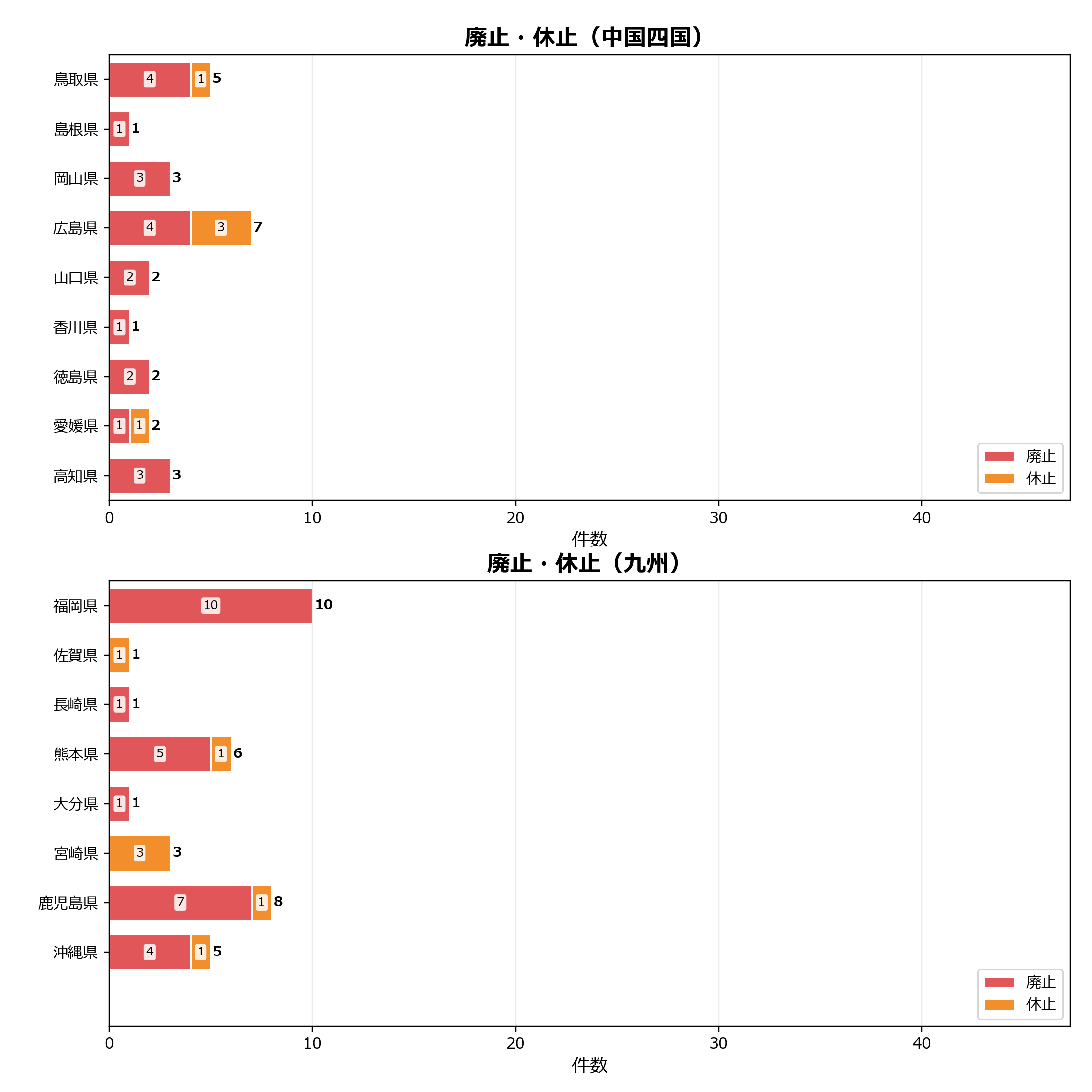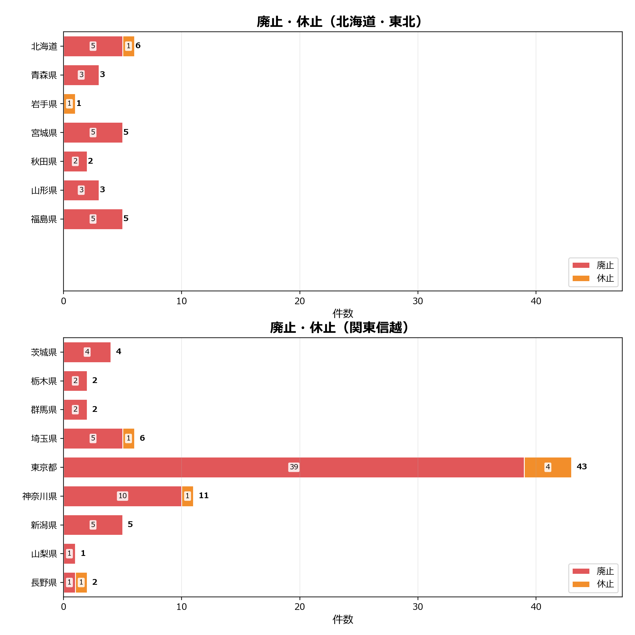 廃止・休止の地域別動向