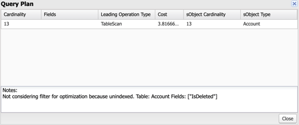 (Query Planを表示し、SOQLのパフォーマンスを表示している画面)