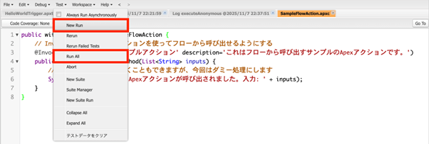作成したApexクラスやトリガーの実行やデバッグを実施することで、実際にApexを動かし、期待通りに稼働するのか確かめることができます。