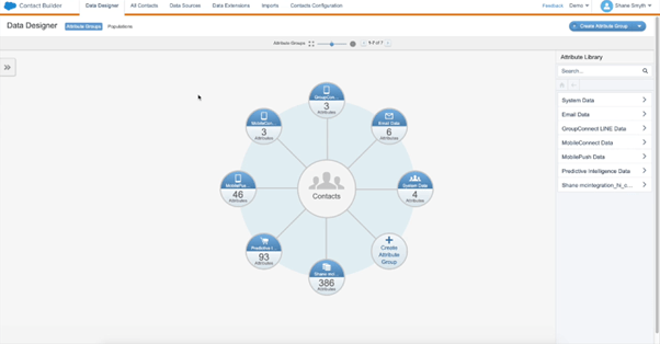 Contact Builderは、Marketing Cloudにおけるデータ統合のハブとなる機能です。メールやLINE、SMS、Webといった複数の接触チャネルに散在する情報を、「1人の顧客」として統一的に管理するための土台を作るのが、この機能の目的です。