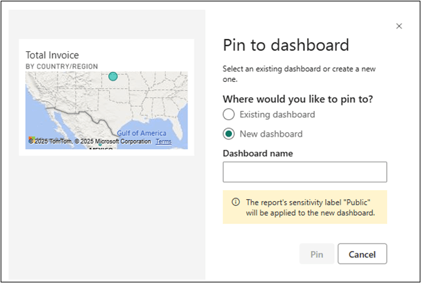 - 既存または新規ダッシュボードを選択し、[ピン留め]を実行する。