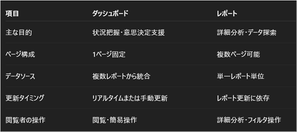 - 1.1 ダッシュボードは“要約”、レポートは“詳細”