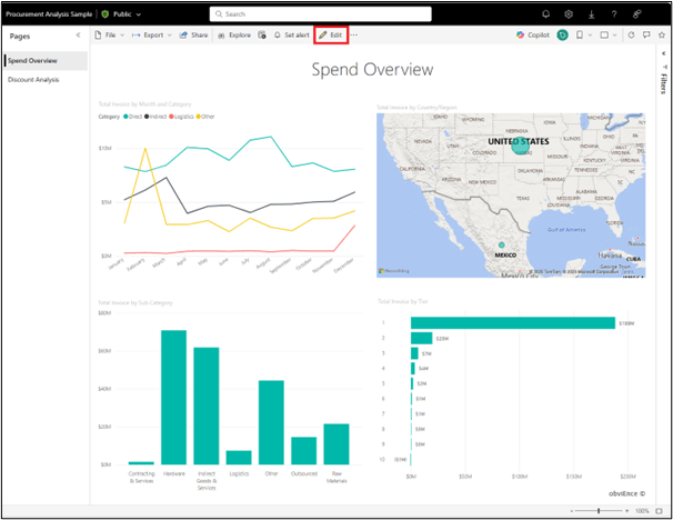 - レポートを開き、[ 編集] を選択して編集ビューでレポートを開く。