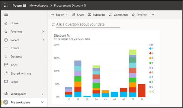 Power BI によって新しいダッシュボードが開く。このダッシュボードには、ピン留めした視覚化という 1 つのタイルがある。