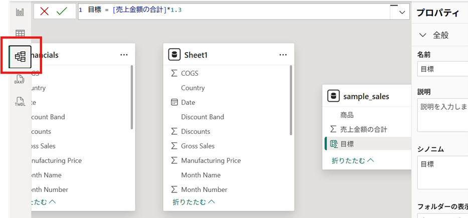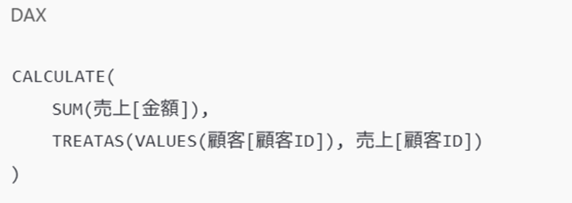 - DAX関数 TREATAS を使い、論理的にリレーションを作成