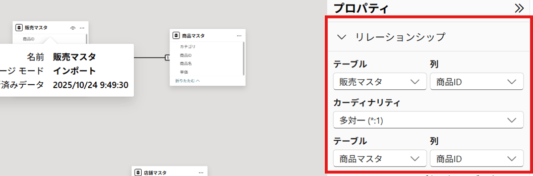 - 関係の種類(1対多、多対1)とフィルタ方向を確認