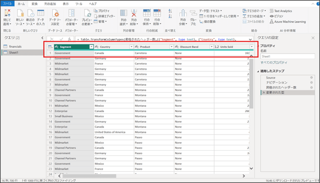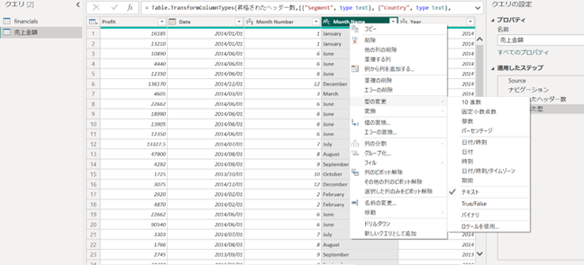 Power Queryエディターでは、データを取り込んだ後に型変換を行うことができます。