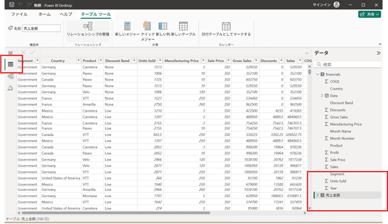 変更後、Power BIが自動で再計算を行います。内容を確認し、レポート作成に進みましょう。