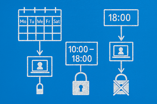 - 「月曜日から金曜日の10時から18時は、自社PCからのアクセスができる」