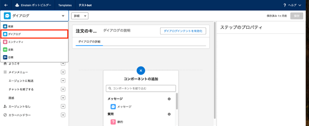(Einsteinボットビルダーの[ダイアログ]タブ)