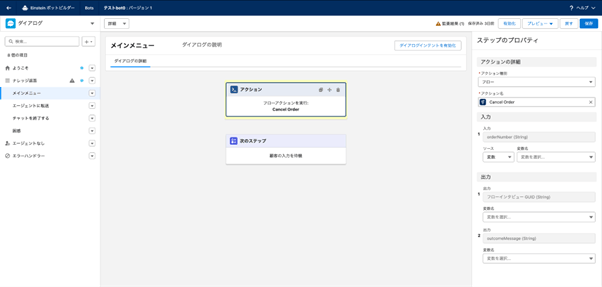 (作成したチャットボットをEinsteinボットビルダーで開いている画面)