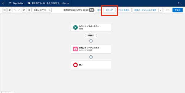 Salesforceにはフローデバッガというデバッグ機能があります。