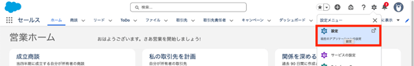 まずは、Salesforceの設定画面に以下手順に従って移動しましょう。