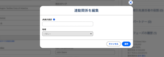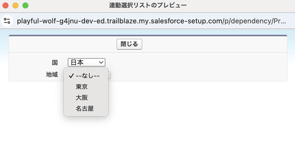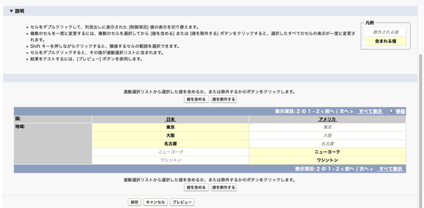 (上記画面の場合、項目「国」の値によって、項目「地域」で選択可能な値を制限します。)