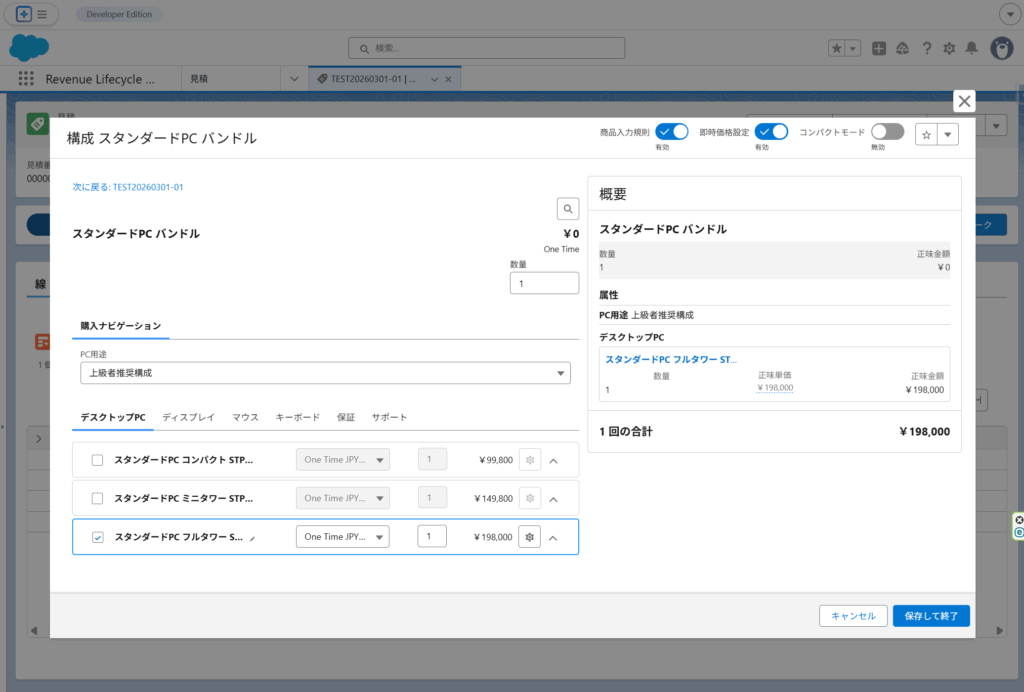 - 商品構成ルールにより、互換性のない組み合わせや必須オプションの選び忘れを防止