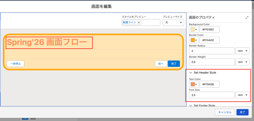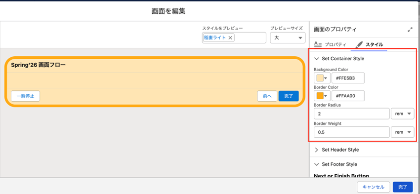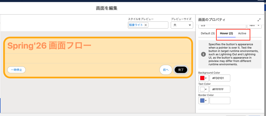 画面フロー:画面要素のスタイル設定が可能に