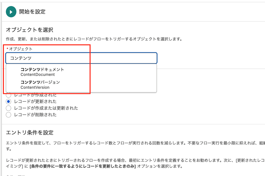 これまでのレコードトリガーフローでは、ファイル系オブジェクトであるコンテンツドキュメント、コンテンツバージョンをトリガーにすることが出来ませんでした。