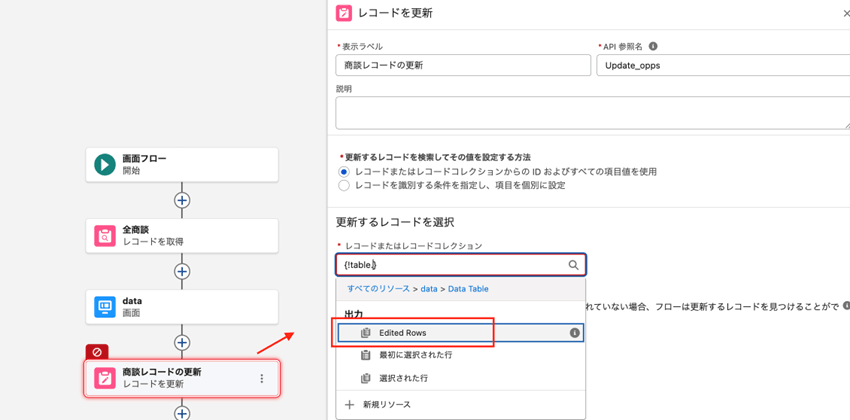 データテーブルを使った画面フローの作成