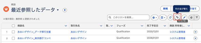 リストビューでは下記のように「列の並び替え」アイコンから複数項目での並び替えが可能ですが、