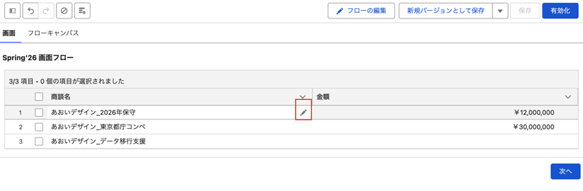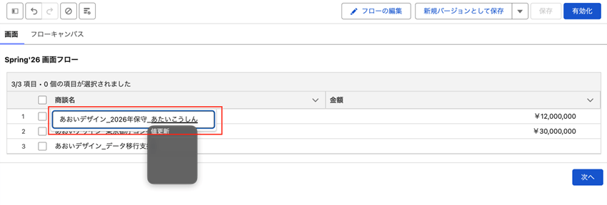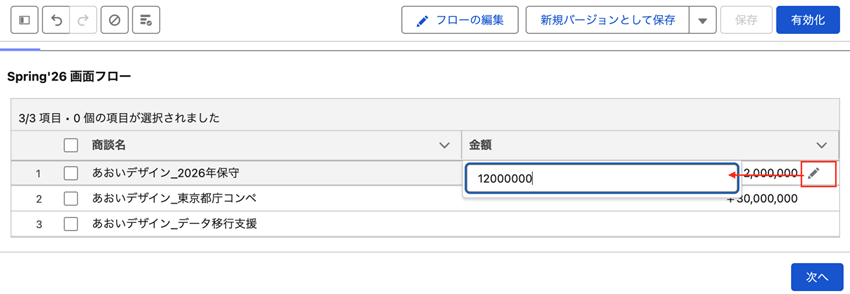 Spring’26:画面フローのデータテーブルでインライン編集が可能に