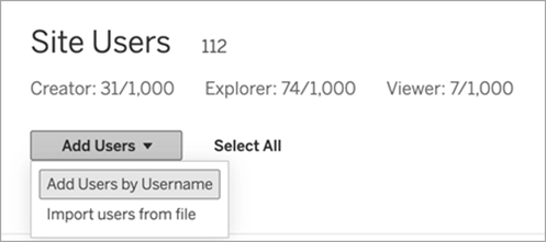 参照:https://help.tableau.com/current/online/ja-jp/sites_addusers.htm?_gl=1*1hpi779*_gcl_au*NTExMDUyMzU0LjE3NjU4OTAyMjcuMjg1MDg2ODk2LjE3NzIzNzA3NTAuMTc3MjM3MDc2Mg..*_ga*NTU3NTMwNjIzLjE3NDgxODc4MjE.*_ga_8YLN0SNXVS*czE3NzI4NTkzNzMkbzEyJGcwJHQxNzcyODU5MzczJGo2MCRsMCRoMA..